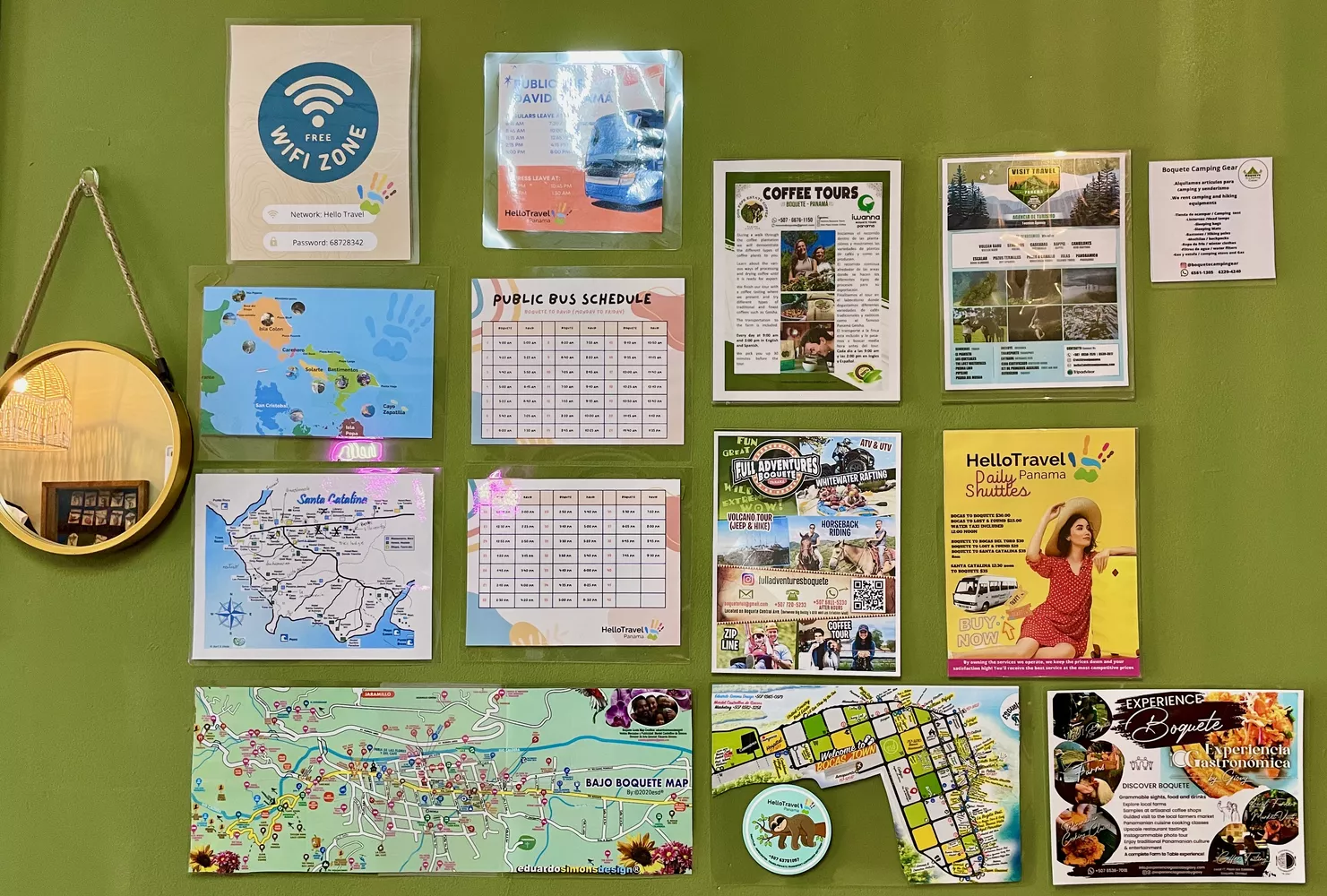 - Daily shuttles and transportation from/to Boquete, Bocas del Toro, Lost & Found, Santa Catalina, Puerto Viejo, San José